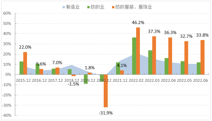 圖1 2022年1-6月服裝行業(yè)生產(chǎn)增速情況