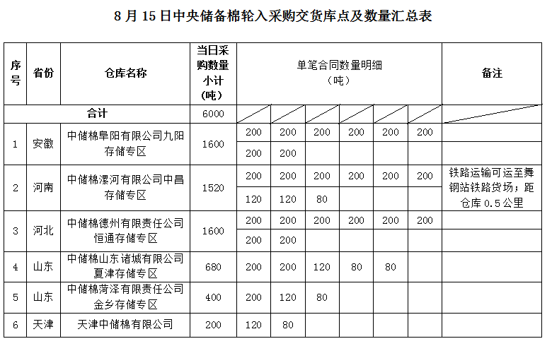 中國儲備棉管理有限公司定于2022年8月15日采購棉花6000噸(公定重量)。具體庫點及數(shù)量如下: