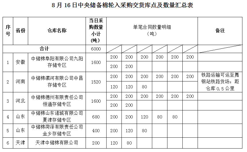 中國儲備棉管理有限公司定于2022年8月16日采購棉花6000噸(公定重量)。具體庫點(diǎn)及數(shù)量如下: