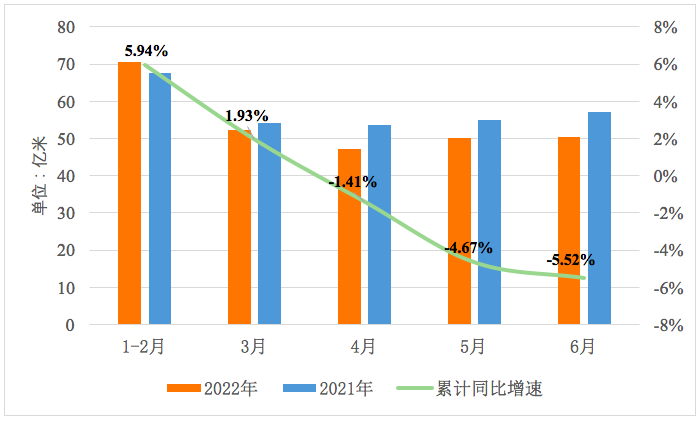 圖1 2022年上半年規(guī)模以上企業(yè)印染布產(chǎn)量情況
