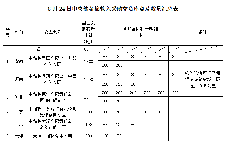 中國儲備棉管理有限公司定于2022年8月24日采購棉花6000噸(公定重量)。具體庫點及數(shù)量如下: