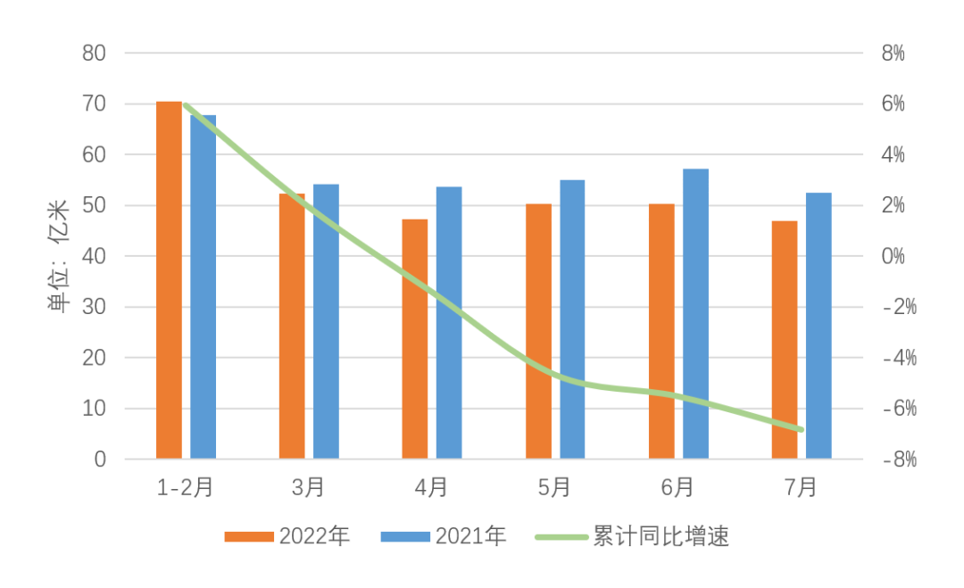 圖1 2022年1-7月規(guī)模以上企業(yè)印染布產(chǎn)量情況