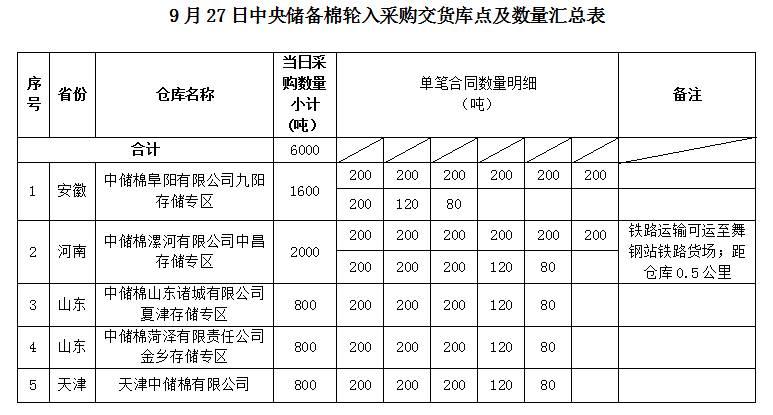 中國儲備棉管理有限公司定于2022年9月27日采購棉花6000噸(公定重量)。具體庫點及數(shù)量如下:
