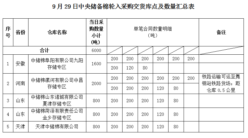 中國儲備棉管理有限公司定于2022年9月29日采購棉花6000噸(公定重量)。具體庫點及數(shù)量如下: