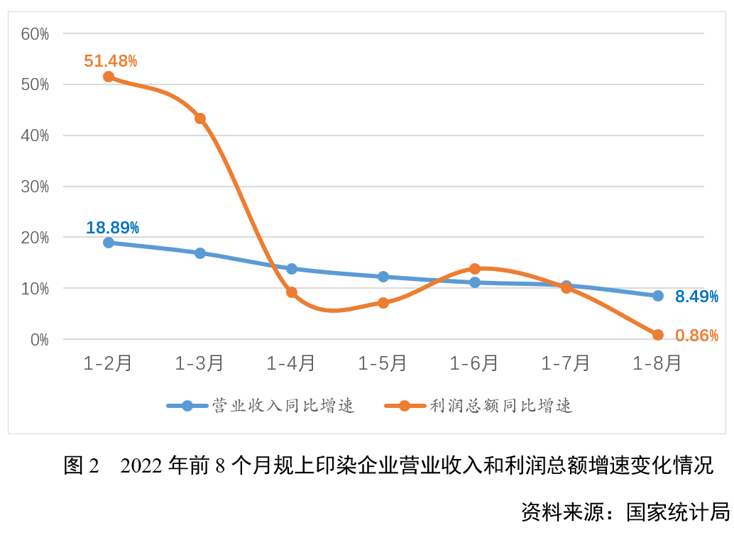8月以來,印染行業(yè)主要經(jīng)濟(jì)指標(biāo)明顯承壓,與1-7月相比,1-8月規(guī)上印染企業(yè)營業(yè)收入增速回落2.03個(gè)百分點(diǎn),利潤總額增速回落9.21個(gè)百分點(diǎn),銷售利潤率降幅擴(kuò)大0.28個(gè)百分點(diǎn),虧損企業(yè)虧損總額增速提高7.66個(gè)百分點(diǎn)。規(guī)上印染企業(yè)利潤總額增速明顯下滑,虧損企業(yè)的虧損總額仍在增長,反映當(dāng)前多數(shù)企業(yè)生產(chǎn)經(jīng)營壓力仍較大。