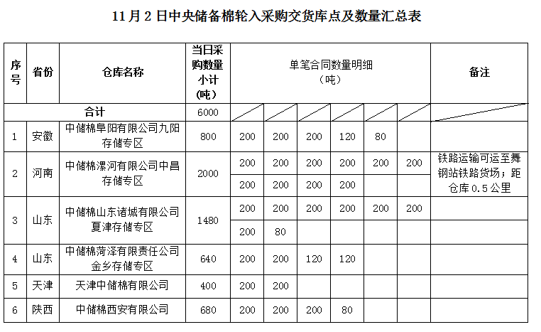 中國儲備棉管理有限公司定于2022年11月2日采購棉花6000噸(公定重量)。具體庫點(diǎn)及數(shù)量如下:
