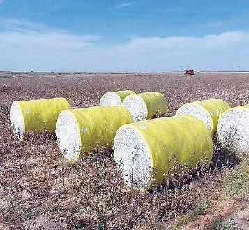 近年來(lái),甘肅農(nóng)墾小宛農(nóng)場(chǎng)積極推進(jìn)農(nóng)業(yè)機(jī)械化進(jìn)程,使棉花采摘效率得到大幅提升,1臺(tái)采棉機(jī)平均每天可采收200-400畝棉花,并能快速、高效地完成采摘、壓縮、打包等工序,采凈率在90%以上,使棉花采摘成本每畝降低500元左右。在當(dāng)前疫情防控形勢(shì)下,采棉機(jī)成為農(nóng)場(chǎng)“最強(qiáng)摘花工”,有力確保棉花“朵朵歸倉(cāng)”。圖為壓縮、打包好的棉朵。