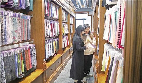 近日,在紹興宇玎紡織有限公司展廳內(nèi),客戶正在挑選面料。公司主要生產(chǎn)針織面料,產(chǎn)品遠(yuǎn)銷歐美,成為諸多國(guó)際品牌服裝的面料供應(yīng)商。近年來(lái),為進(jìn)一步降低生產(chǎn)成本,公司在埃及設(shè)立工廠,目前年產(chǎn)針織面料3000噸,發(fā)揮地域優(yōu)勢(shì)助力公司拓展海外市場(chǎng)。
