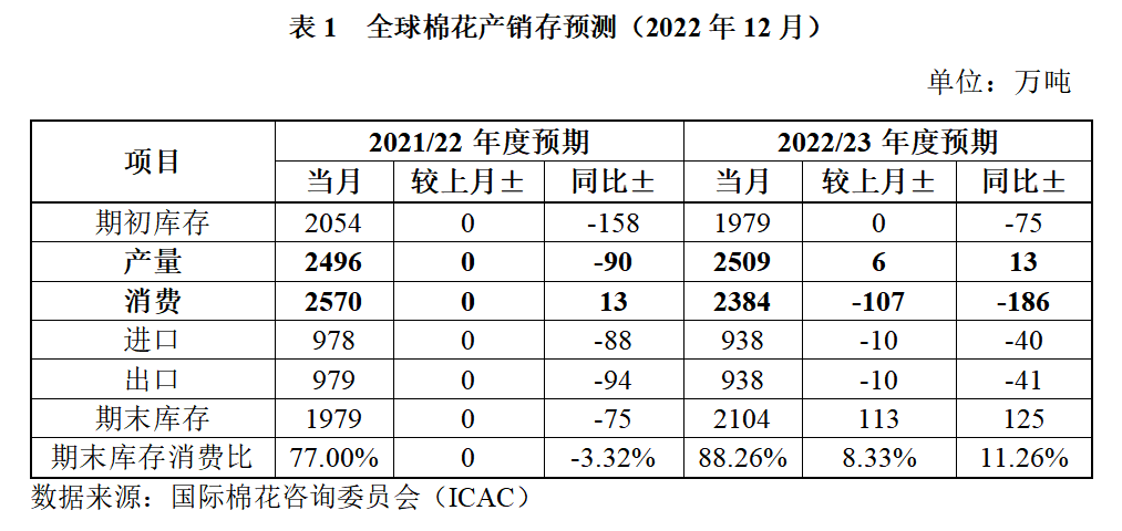 (三)2022年度全球棉花產量小幅調增消費大幅調降逾百萬噸