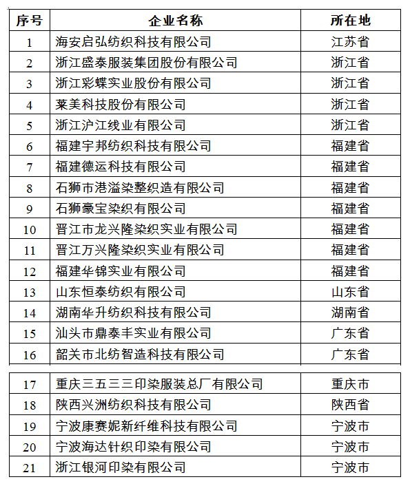 附件:符合《印染行業(yè)規(guī)范條件(2017版)》企業(yè)名單(第五批)