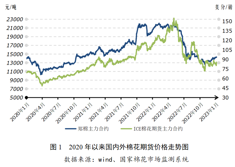 2023年1月以來(lái),全球經(jīng)濟(jì)增速不斷放緩,美聯(lián)儲(chǔ)加息力度減弱信號(hào)刺激美股反彈,棉花期貨價(jià)格隨之抬升。國(guó)內(nèi)疫情防控政策調(diào)整后,市場(chǎng)焦點(diǎn)轉(zhuǎn)向消費(fèi)預(yù)期,下一步棉花行情走勢(shì)如何,本期月報(bào)將進(jìn)行探討。