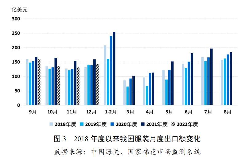 美國(guó)服裝進(jìn)口銳降。美國(guó)服裝庫(kù)存仍高企,據(jù)美國(guó)商務(wù)部數(shù)據(jù)顯示,2022年11月美國(guó)服裝批發(fā)商的庫(kù)存銷售比3.03%,繼續(xù)刷新2020年5月以來(lái)新高。11月美國(guó)服裝服飾商店零售額比上月下降0.21%,結(jié)束連續(xù)3個(gè)月增長(zhǎng),轉(zhuǎn)向下降,比去年同期增長(zhǎng)0.7%,為2021年3月以來(lái)最低增速。美國(guó)服裝消費(fèi)疲弱和庫(kù)存過(guò)剩壓力下,導(dǎo)致進(jìn)口需求大幅下降,2022年11月美國(guó)服裝進(jìn)口額同比大幅下降14.9%,是2021年3月以來(lái)首次負(fù)增長(zhǎng),其中對(duì)中國(guó)、越南進(jìn)口額同比分別下降37.3%、6.3%。