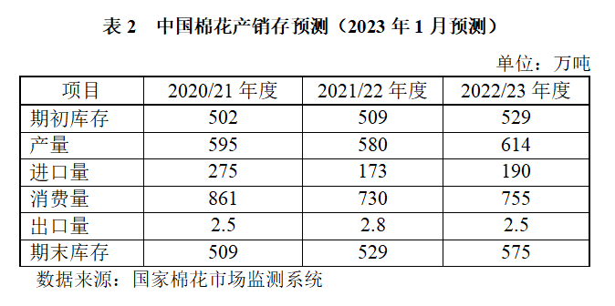 基于相關(guān)專題調(diào)查和對(duì)國(guó)內(nèi)外經(jīng)濟(jì)環(huán)境及市場(chǎng)狀況的分析,本期國(guó)家棉花市場(chǎng)監(jiān)測(cè)系統(tǒng)對(duì)2022年度中國(guó)棉花產(chǎn)銷存預(yù)測(cè)維持上月觀點(diǎn):