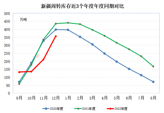 二、新疆棉花周轉(zhuǎn)庫存大幅增加