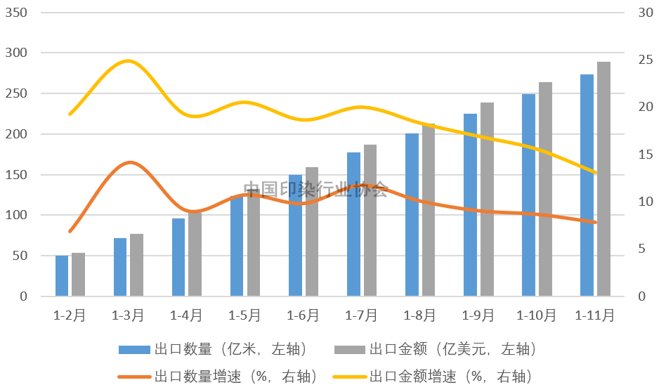 2022年11月,國際環(huán)境仍復(fù)雜嚴峻,地緣政治沖突不斷深化,發(fā)達經(jīng)濟體貨幣政策持續(xù)收緊,全球經(jīng)濟下行風(fēng)險加大,外需收縮進一步顯現(xiàn)。國內(nèi)疫情多發(fā)廣發(fā)對印染企業(yè)正常生產(chǎn)經(jīng)營造成較大影響,同時也對內(nèi)需消費形成明顯制約。多重超預(yù)期因素影響下,1-11月規(guī)模以上印染企業(yè)印染布產(chǎn)量降幅進一步擴大,行業(yè)運行效益有所下滑,主要印染產(chǎn)品出口增速繼續(xù)放緩,印染行業(yè)運行仍面臨較大壓力。