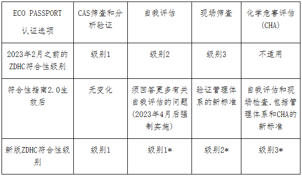ZDHC對(duì)符合性級(jí)別要求做如下更改: