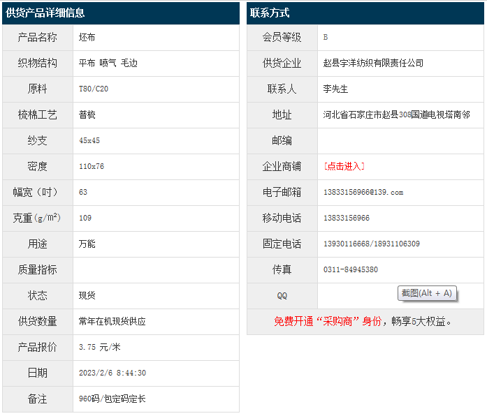 2月6日,趙縣宇洋紡織有限責(zé)任公司滌棉平布T80/C20 45x45 110x76 63" 109g/㎡ 噴氣 毛邊,報價為3.75元/米,實際成交價以協(xié)商為準(zhǔn)。[點擊查看詳情]