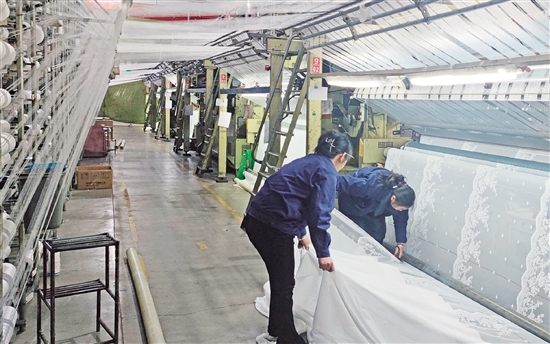 日前,在位于楊汛橋街道的紹興市欣明家居有限公司生產(chǎn)車間內(nèi),工人們正在以“滿功率”狀態(tài)趕訂單。據(jù)悉,公司目前生產(chǎn)的窗簾、窗紗等經(jīng)編產(chǎn)品已銷售到全世界20多個國家和地區(qū),今年開年以來訂單形勢持續(xù)向好,比去年同期有所增長,目前訂單量已排到3月底。