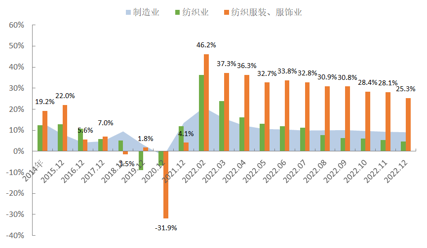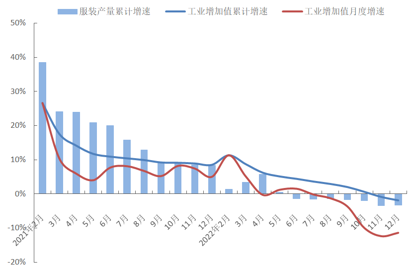 圖1 2022年1-12月服裝行業(yè)生產(chǎn)增速情況