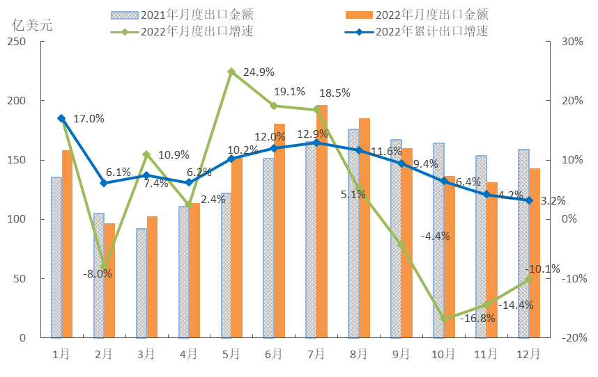 圖3 2022年1-12月我國服裝及衣著附件出口情況