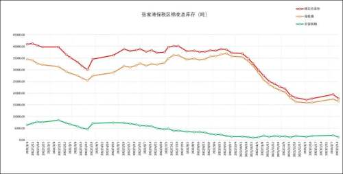 據(jù)張家港保稅區(qū)紡織原料市場(chǎng)統(tǒng)計(jì),截至2月16日當(dāng)周,張家港保稅區(qū)棉花總庫(kù)存1.77萬(wàn)噸,環(huán)比減少8.98%;其中保稅棉1.65萬(wàn)噸,環(huán)比減少5.54%,非保稅棉0.1萬(wàn)噸,環(huán)比減少39.43%。從進(jìn)口棉來(lái)源地來(lái)看,張家港保稅區(qū)棉花庫(kù)存中:美棉占比34.44%,環(huán)比增加2.32個(gè)百分點(diǎn);巴西棉占比34.23%,環(huán)比減少4個(gè)百分點(diǎn);印度棉占比16.94%,環(huán)比增加1.99個(gè)百分點(diǎn);其他國(guó)家及地區(qū)占比14.39%,環(huán)比減少0.31個(gè)百分點(diǎn)。當(dāng)周進(jìn)口棉進(jìn)出入庫(kù)動(dòng)態(tài)變化情況,張家港保稅區(qū)棉花庫(kù)存中,出庫(kù)1474噸,入庫(kù)531噸,凈入庫(kù)(-943)噸。