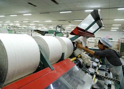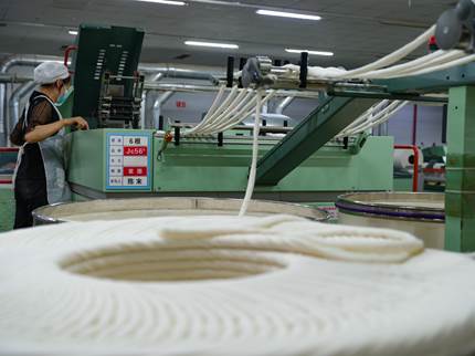 近日,位于安徽省蚌埠市五河縣經(jīng)濟開發(fā)區(qū)的華芳五河紡織有限公司生產(chǎn)車間內(nèi),工人們在生產(chǎn)線上忙碌,生產(chǎn)車間一片繁忙。該企業(yè)引進先進的技術(shù)設(shè)備,加大關(guān)鍵核心技術(shù)攻關(guān),加快推動紡織生產(chǎn)數(shù)字化轉(zhuǎn)型,打造綠色環(huán)保、智能化的生產(chǎn)線,提高產(chǎn)品競爭力,推動企業(yè)高質(zhì)量發(fā)展。