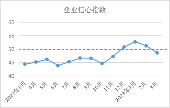 3月,企業(yè)信心指數(shù)為48.68,較2月下降2.62,低于臨界點。當前,全球金融市場風險上升,國際貿(mào)易環(huán)境復雜多變,外貿(mào)市場存在較大不確定性。國內(nèi)經(jīng)濟運行雖開局良好,但市場需求制約不足仍然存在,紗布產(chǎn)品價格處于下降趨勢,企業(yè)效益恢復面臨困難,多數(shù)企業(yè)寄希望于淡季來臨前下游需求能有所好轉(zhuǎn)。