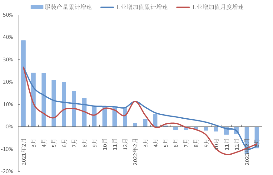 圖1 2023年1-3月服裝行業(yè)生產(chǎn)增速情況