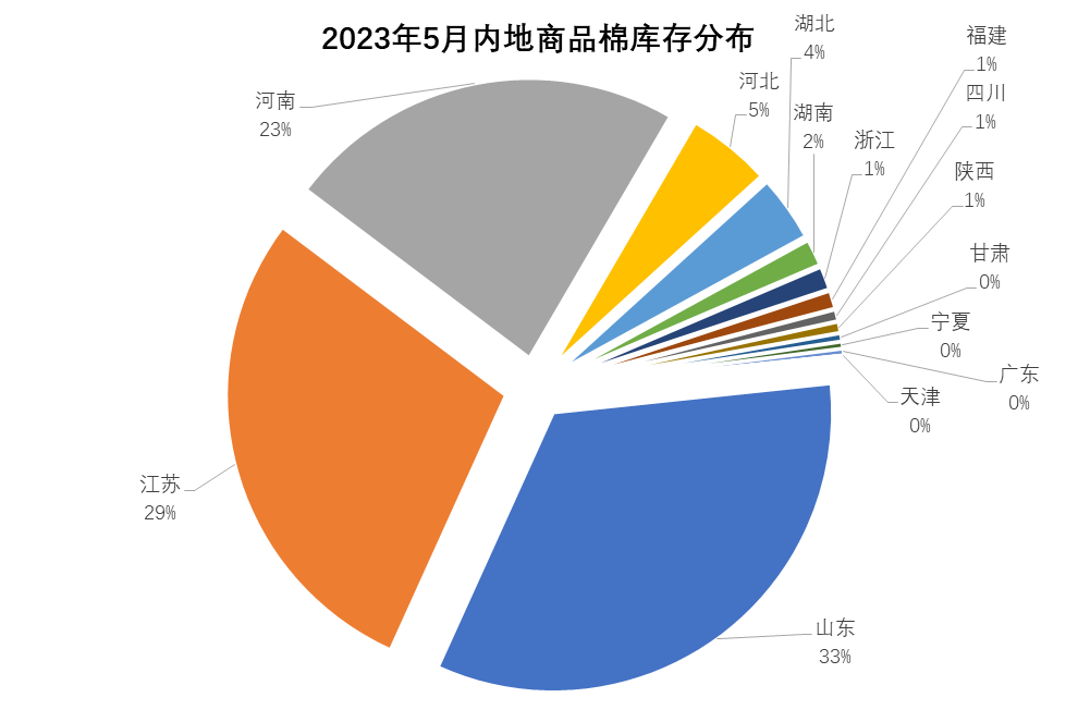 5月內(nèi)地商品棉周轉(zhuǎn)庫存量較上月有所增加,各產(chǎn)銷大省庫存多有不同程度增加。月內(nèi)紡織廠開機(jī)率充足,疆內(nèi)棉花繼續(xù)移庫到內(nèi)地,隨著棉價(jià)快速上漲,紡織廠內(nèi)地適量采購。5月內(nèi)地商品棉周轉(zhuǎn)庫存69.12萬噸,環(huán)比增加4.49萬噸。其中新疆棉60.95萬噸,已通關(guān)進(jìn)口棉4.23萬噸,地產(chǎn)棉3.94萬噸。