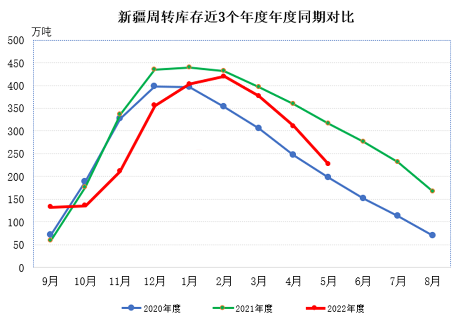 二、新疆棉花周轉(zhuǎn)庫存大幅減少