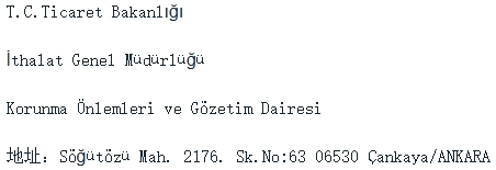 調查機關(土耳其貿易部)聯(lián)系方式:
