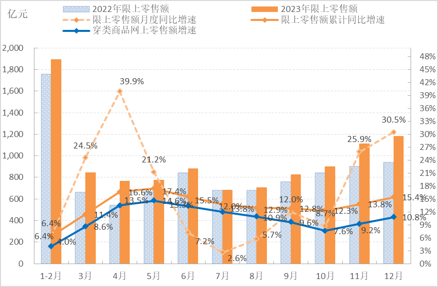 圖2 2023年1-12月國(guó)內(nèi)市場(chǎng)服裝銷(xiāo)售情況