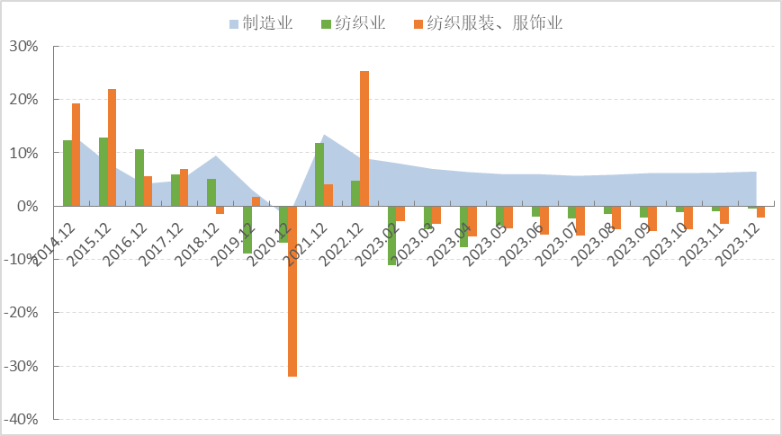 圖1 2023年1-12月服裝行業(yè)生產(chǎn)增速情況