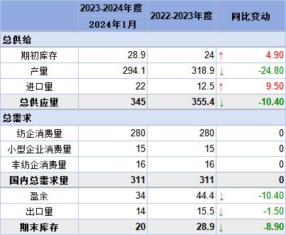 以下為印度棉花協(xié)會供需平衡表:單位:十萬包(1包=170公斤)