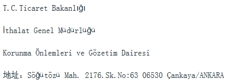 調(diào)查機關(guān)(土耳其貿(mào)易部)聯(lián)系方式: