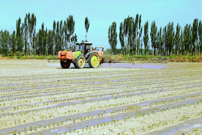 5月3日,在阿瓦提縣塔木托格拉克鎮(zhèn)阿克亞村的棉田里,一臺(tái)拖拉機(jī)拉著植保機(jī)械開(kāi)展植保作業(yè)。眼下,正值棉花田間管理關(guān)鍵時(shí)期,該縣組織棉農(nóng)利用植保無(wú)人機(jī)、大中型農(nóng)用機(jī)械對(duì)130萬(wàn)畝棉花開(kāi)展植保作業(yè),確保今年棉花豐產(chǎn)豐收。