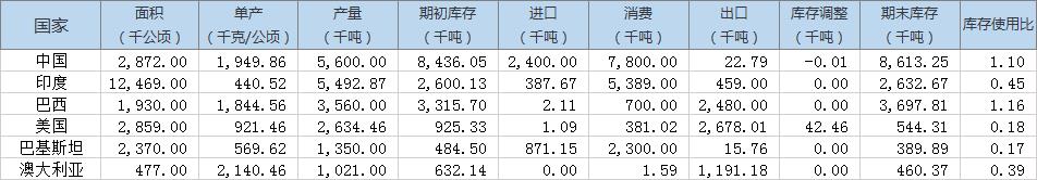 以下為對主要棉花生產(chǎn)國供需情況預估: