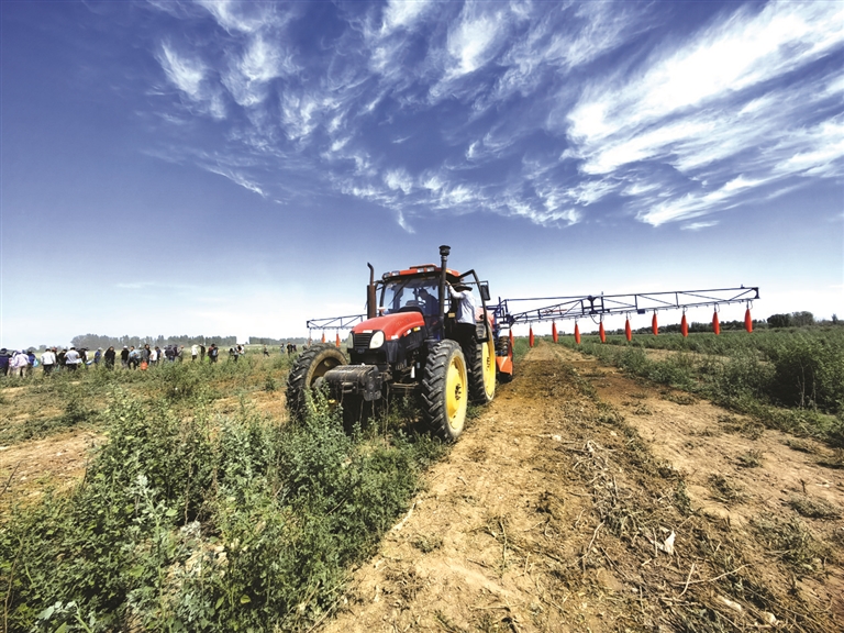 近日,昌吉農業(yè)高新技術產業(yè)示范區(qū)老龍河萬畝棉田綠濤陣陣,一臺智能吊桿式噴霧機張開雙翼,噴灑白色藥霧,所到之處,一株株棉苗被均勻籠罩在藥霧中。