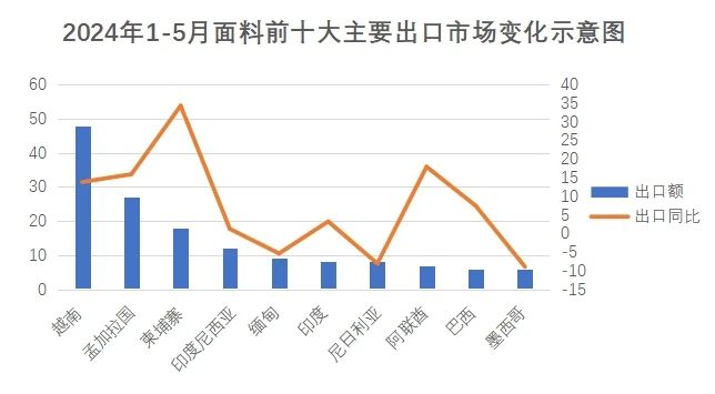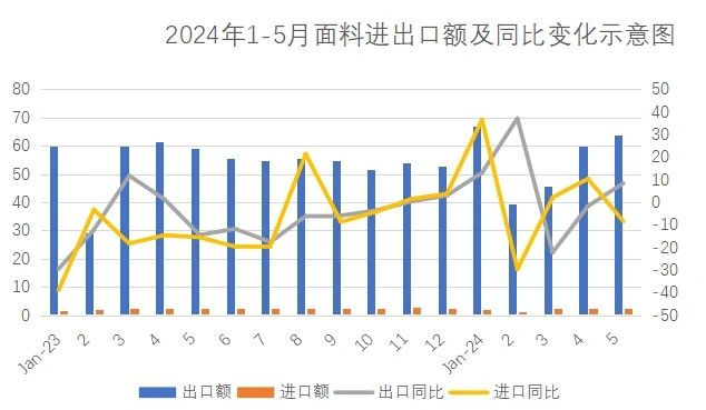 2024年1-5月面料出口增幅超過紡織服裝增幅