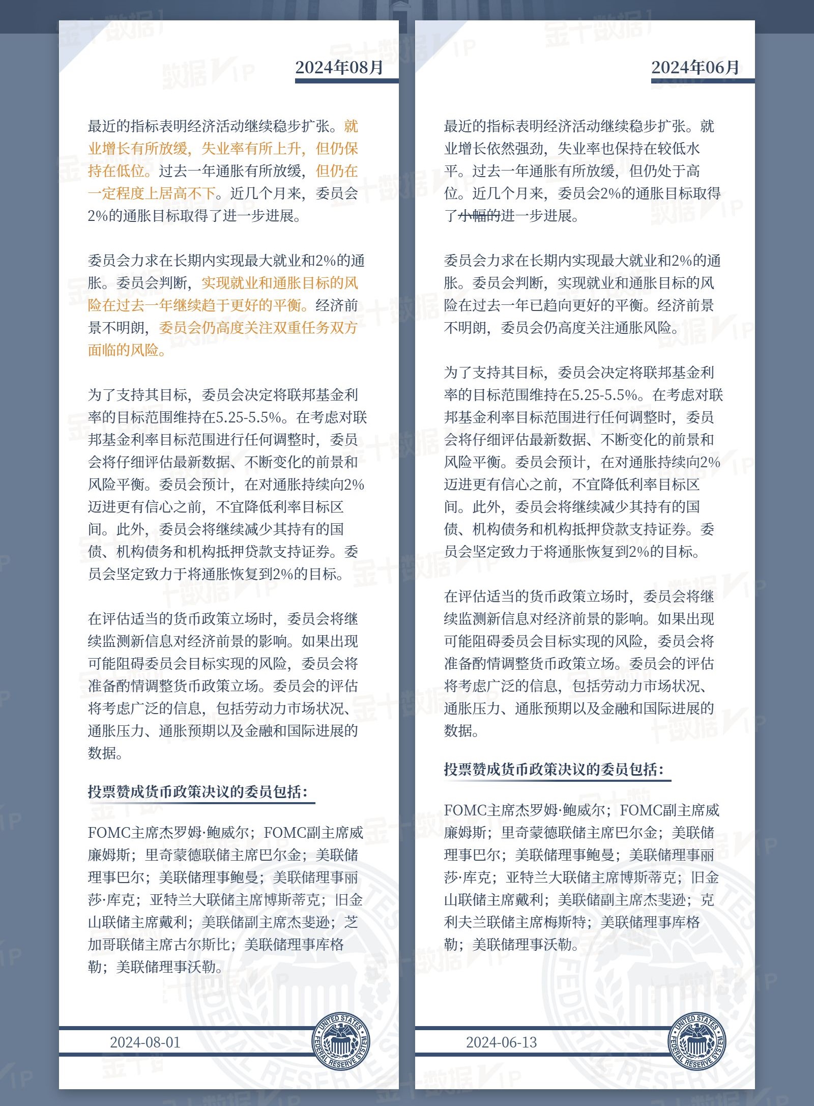 美聯(lián)儲FOMC聲明變化一覽: