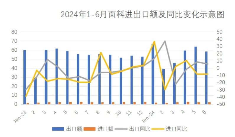 2024年1-6月面料出口增幅超過紡織服裝增幅