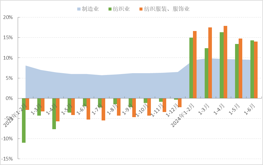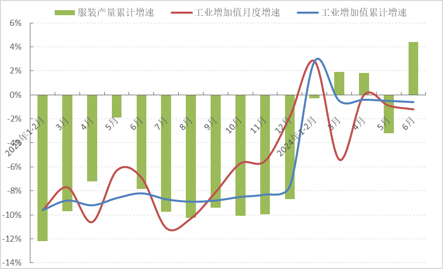 圖1 2024年1-6月服裝行業(yè)生產(chǎn)增速情況
