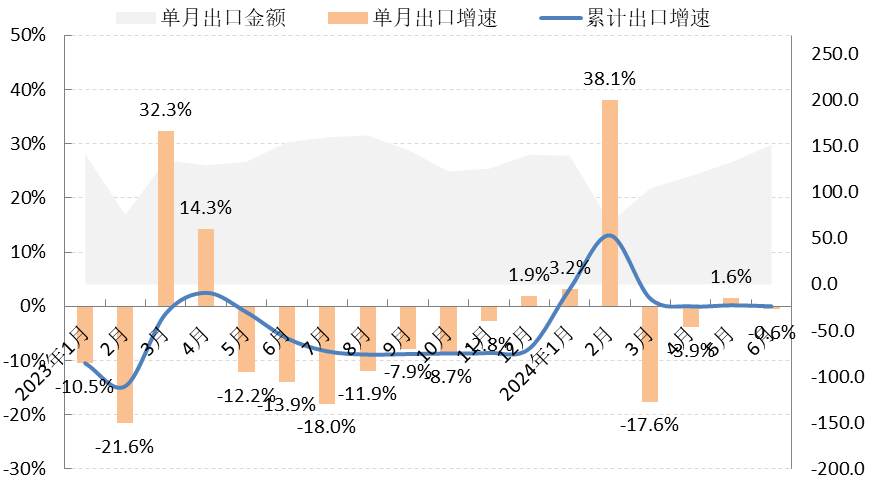 圖3 2024年1-6月我國服裝及衣著附件出口情況
