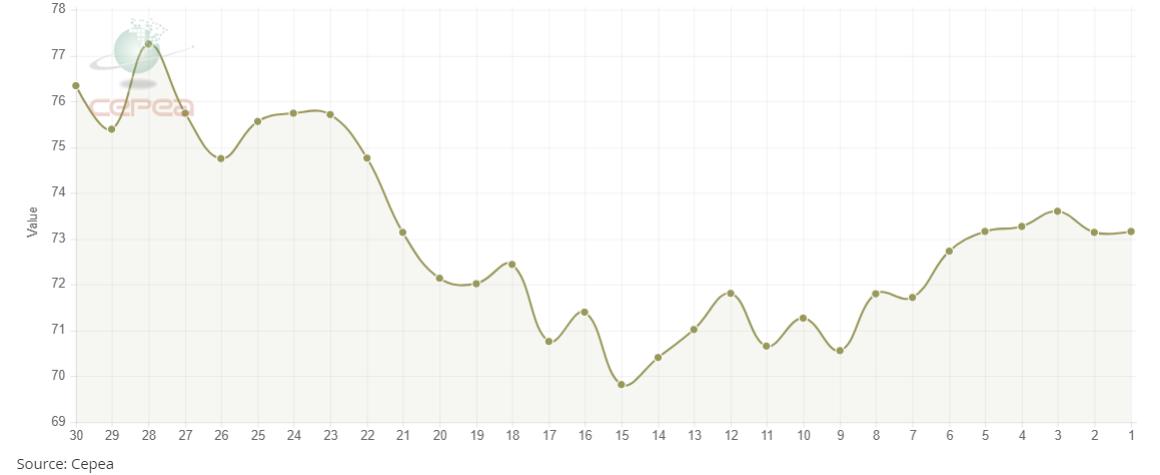 據(jù)外電8月15日消息,8月15日巴西CEPEA/ESALQ棉花價格指數(shù)報每磅73.16美分,較前一日微升0.03%。