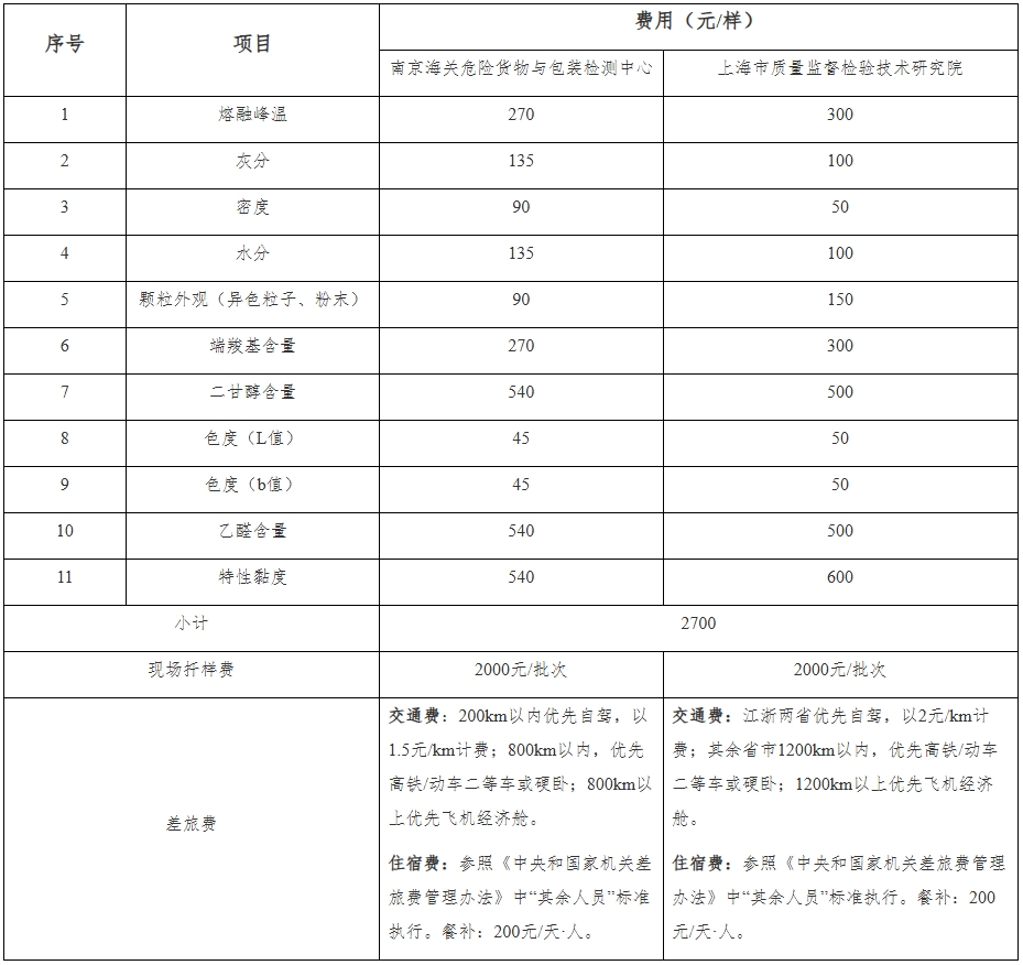 瓶片質(zhì)檢項(xiàng)目及收費(fèi)標(biāo)準(zhǔn)