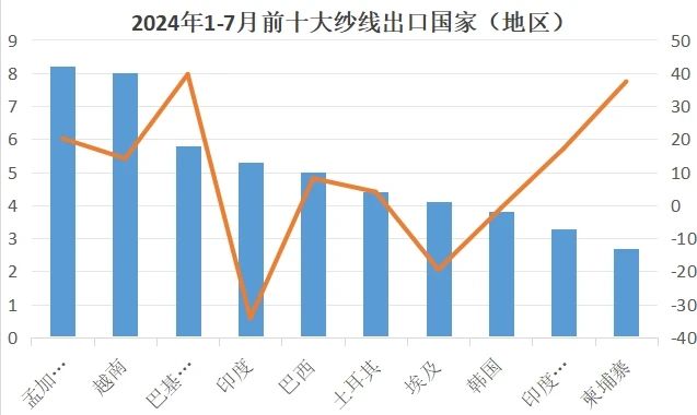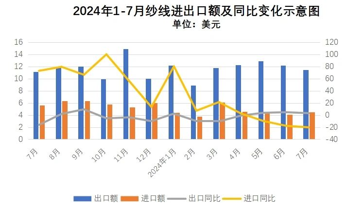 7月對東盟出口紗線2.6億美元,同比增長28.1%。
