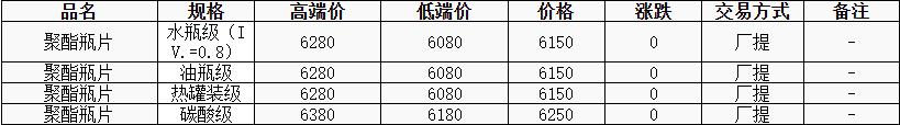 華東聚酯瓶片價(jià)格持穩(wěn)至6150元/噸。原油及原料價(jià)格上漲,聚酯瓶片工廠報(bào)價(jià)上調(diào)20-50元/噸,場(chǎng)內(nèi)低價(jià)貨源消失,重心暫時(shí)僵持。下游昨集中補(bǔ)貨,今交投恢復(fù)清淡。