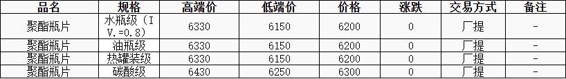 華東聚酯瓶片價格穩(wěn)至6200元/噸,原料偏強(qiáng)震蕩,聚酯瓶片工廠報價較昨下調(diào)20-50元/噸,市場重心暫時企穩(wěn)。由于部分貨源提貨緊張,加之原油、原料偏強(qiáng),場內(nèi)低價貨源暫時消失。但下游跟進(jìn)有限,零星低價遞盤6180,暫無實單成交,觀望中。