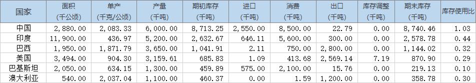 以下為全球棉花供需情況預估: