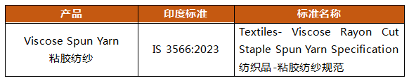 2024年9月26日,印度標(biāo)準(zhǔn)局提交G/TBT/N/IND/345號通報,計劃對粘膠紡紗(HS:5510.1110,5510.1190,55109010,5510.9090)實施質(zhì)量控制。